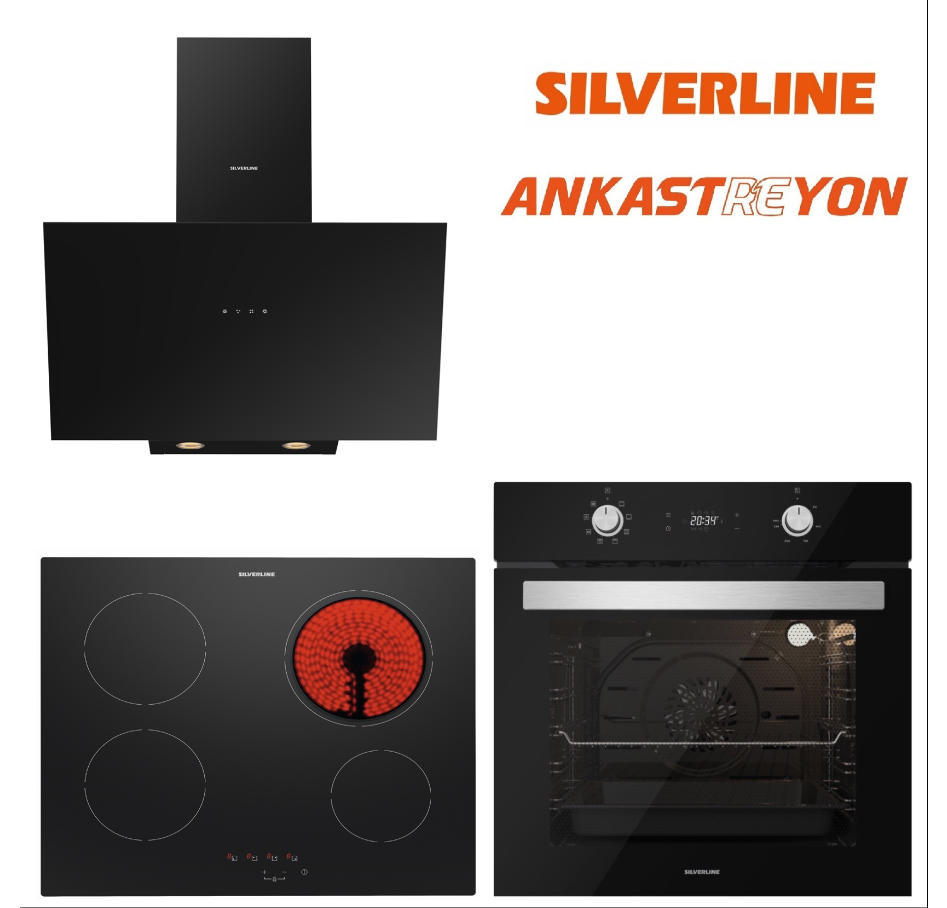 Silverline BO6504B01-VC8210B01-3481 FLAM Siyah Cam Ankastre Set